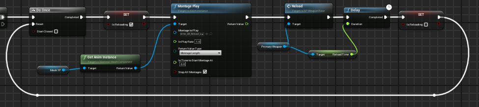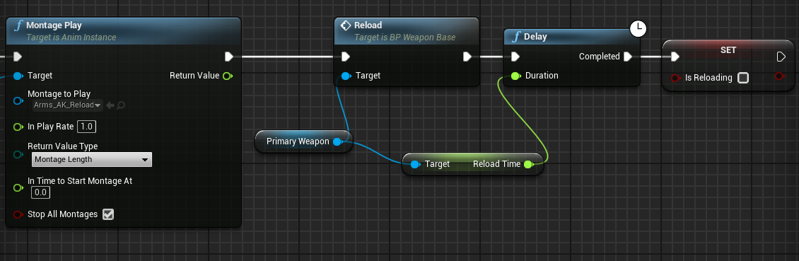 4. Let us now call the reload event on our weapon and add another delay, after which we will set our IsReloading back to false.