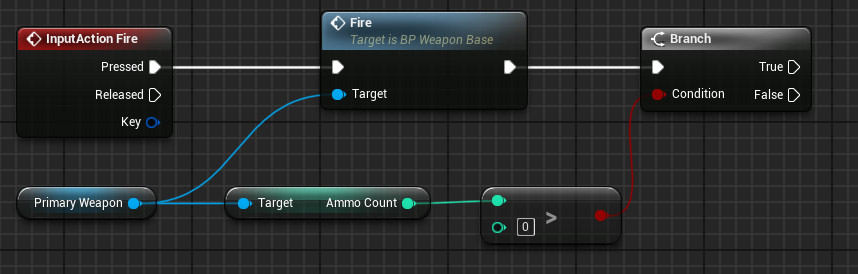 3. Let's double-check that we have enough bullets to fire. Check the AmmoCount from the primary weapon to see if it is greater than 0.