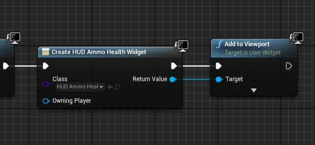 7. Go to our HUD blueprint and add AmmoHealth Blueprint to viewport. Compile and save.