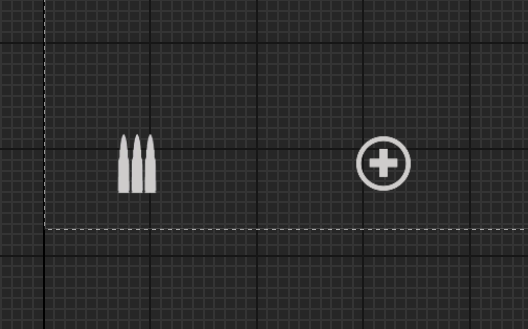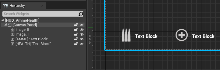 3. Create two text widgets and place them next to the icons (Anchor to left bottom also). Rename those to Health and Ammo, respectively.