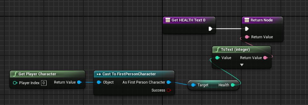 6. Return to the designer's workspace (up right corner). Do the same for health, but in the return node, return the player's health. Compile and save your work.