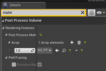 6. Lets now add damage effect. First create new PostProccessing component. Under Rendering features create new material, choose asset reference and choose our Hit_PP material.