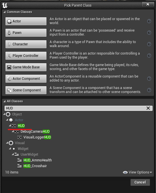 1. Let's make a HUD. Make a new blueprint and look for HUD in all classes. Make a new variable and name it BP_FPSHUD.