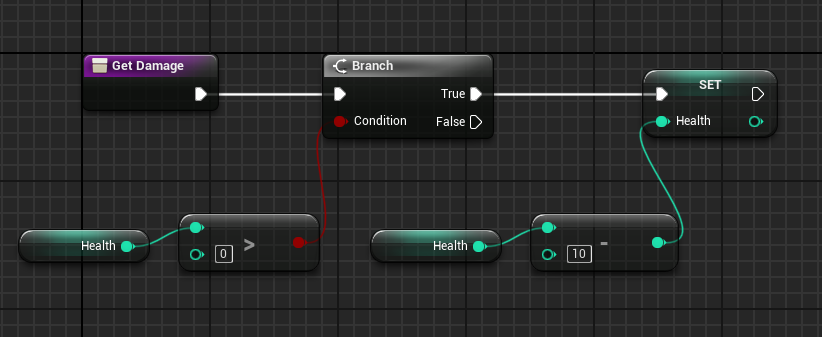 3. Back to GetDamage function, trigger this event after decrementing damage. Compile and save.