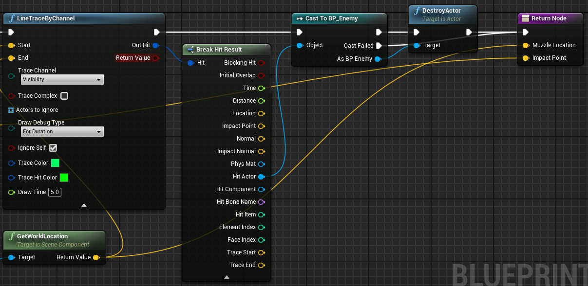 Now we can kill our enemies. Also you can tur off lines in Line trace function.