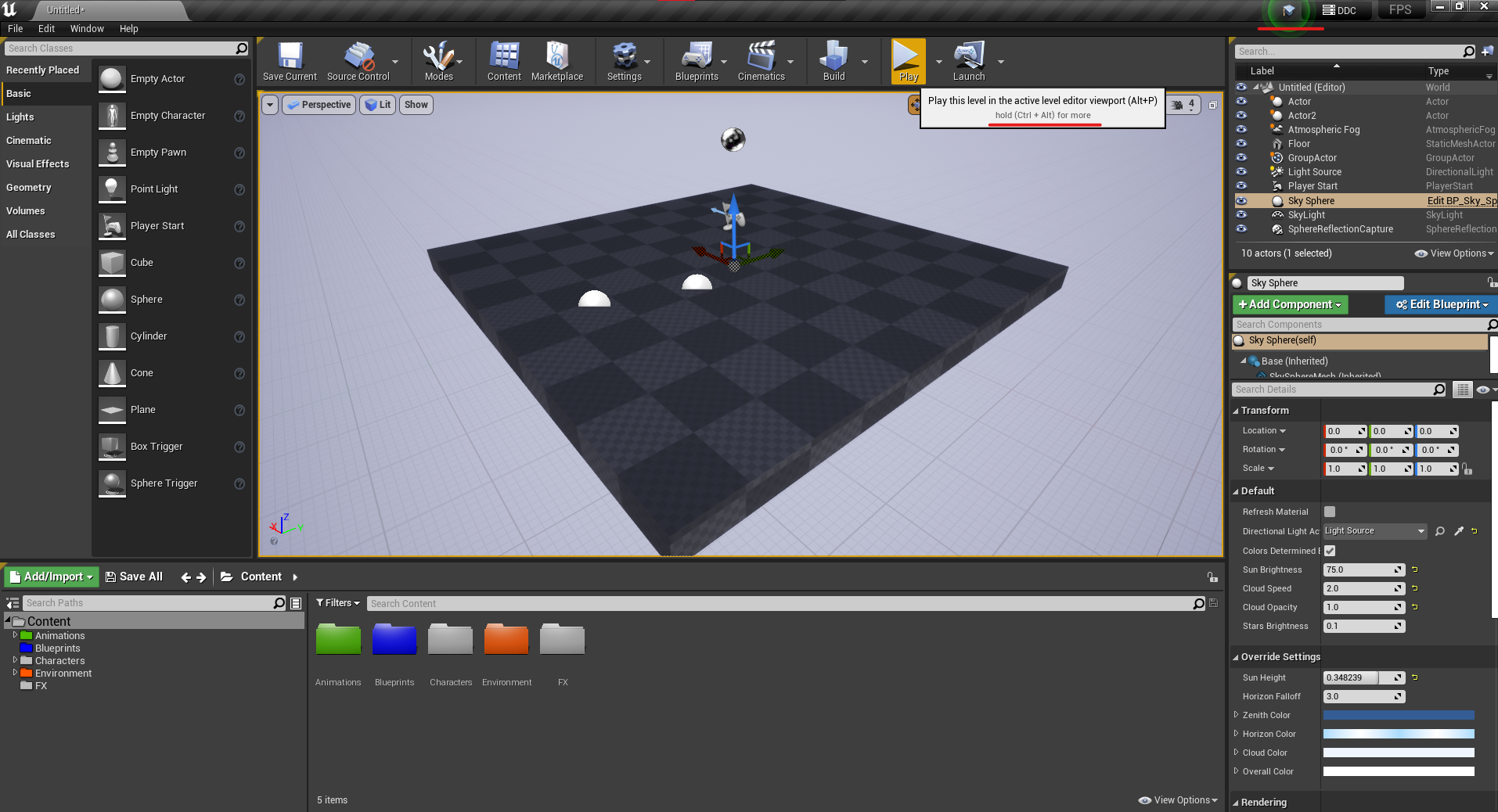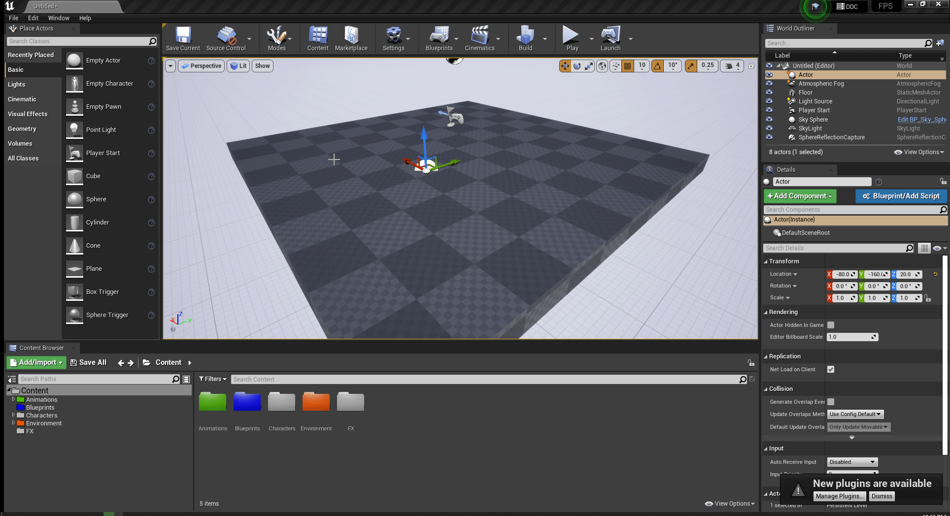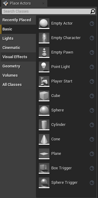 Place actor section contains built-in objects. These objects are known as actors.
