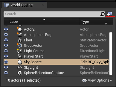 The world outliner tab displays all of the objects that have been placed in the scene. You can group those objects by making a new folder and putting them in it.