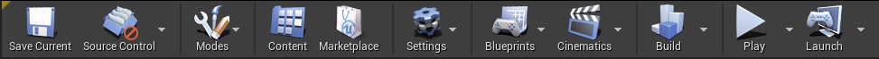You can save your project, change project settings, and run the current level in various modes from the main toolbar.
