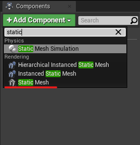 1. Add static mesh component (this components allows us to add objects)