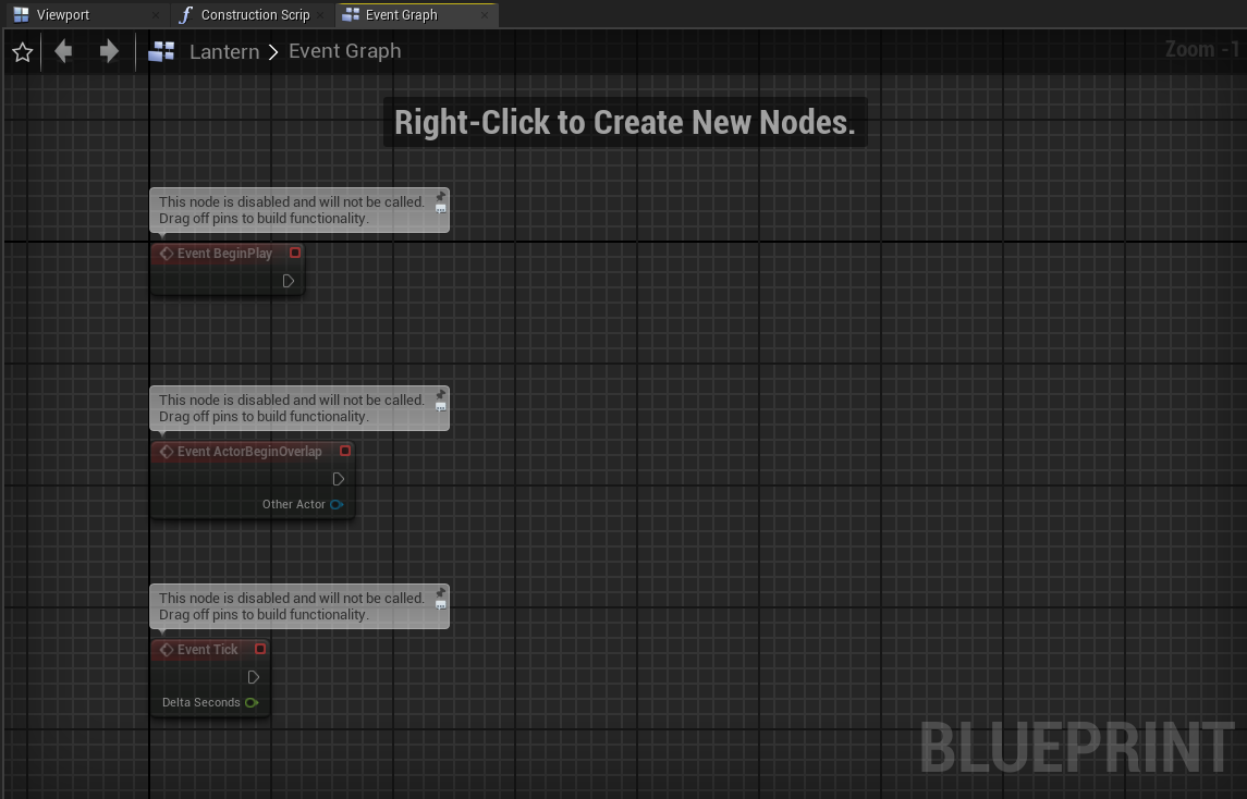 Essentially, these are your game elements, such as the player, HUD, game modes, and so on, with logic attached to them. In this tutorial, we will make a basic lantern with blinking lights.