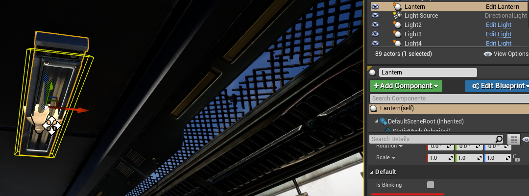 You will now see a checkbox on every lantern in the game. Setting it to true will cause your light to blink, and it will now be unique for each lantern in the game without the need for additional blueprints.