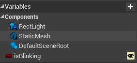 5. But what if you don't want all of your game's lights to blink? One solution would be to create another lantern without logic, but this would be too complicated in the future if you had the same objects with different logic. We have variables for this purpose. To make one, click the + button in the variables section. Let's make a true/false variable (Boolean) called isBlinking (hit the eye icon to see it in the editor as well).