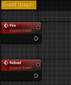 3. Open event graph and create custom events for Fire and Reload (Add custom event node).