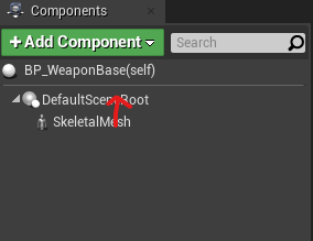 1. Make a weapon base blueprint (new actor class blueprint). Assemble a Skeletal mesh component as a root (drag skeletal mesh into default scene root component). In the mesh section, select AK.